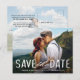 Stylish Simple Modern And Elegant Save The Date postcard. This design features a modern hand lettered script font and your names, date and location of the wedding on the front of the card and 2 photos. Add your unique custom message on the back in trendy white block lettering. Please do not hesitate to contact me if you require assistance with this design.