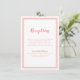 Simple Wedding Reception Framed Coral White Enclosure Card