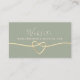 Minimalist, modern, trendy sage green wedding website enclosure card with gold rope heart and simple calligraphy script.