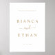 Simple minimalist gold on white welcome sign in modern, chic and elegant typography style. Perfect for wedding or engagement party decoration. Customise with welcome text, couple names and wedding date.