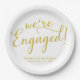 Simple We're Engaged Engagement Party Gold Paper Plate
