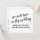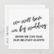 This design features the text "we will have our big wedding" in a casual handwriting font. This is followed by "When We Can Hug Our Beloved Guests" in an all-caps, sans-serif font. Use the template fields to add your personal details and change any of my draught wording to suit your needs and situation. If you haven't set a date yet, you can click to further customise and remove the unneeded lines. Feel free to change the background to any colour you prefer. If you'd rather have my help with customising, please do not hesitate to reach out. // 100 //