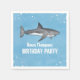 This cute design features a simple blue animal party décor, a cute pool party water ocean, with watercolor shark fish sea animal, a blue custom paper party napkin, a cocktail drinkware drink beverage, with wild wildlife nautical marine life, with sharks fish marine grey black, a fun whimsical festive picnic invite, great for summer fun swimming swim party, for backyard summer kids birthday party supplies