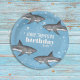 This cute design features a simple blue animal kids children birthday party décor, a cute pool party water ocean, with watercolor shark fish sea animal, a blue custom paper party plate, a cocktail tableware, table dinner dessert plate, with wild wildlife nautical marine life, with sharks fish marine grey black, a fun whimsical festive picnic invite, great for summer fun swimming swim party, for backyard summer party supplies
