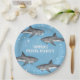 Simple Whimsical Pool Party Sharks Blue Ocean Paper Plate