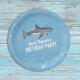 Simple Whimsical Pool Party Sharks Blue Ocean Paper Plate