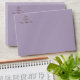 Happy tricks or treats! This design features simple minimalist purple,5x7 minimal a7 size, Halloween candy coordinating matching, return address printed family, greeting card envelope, invitation envelope, brown neutral envelope, bright purple light envelope, basic plain simplistic envelope, Halloween purple matching envelope