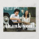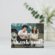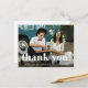 Simple and whimsical wedding photo thank you card postcard features white typography and one photo on the front, with an editable thank you message with return address on the back.
