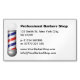 Simple White Barbershop Barber's Pole Business Card - Space to write on the back of the card. OR add a QR code using the Zazzle edit feature.