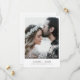 This simply chic photo wedding save the date flat card template features a clean, modern design with elegant script in white over the lower portion of your photo. We've added a gradated layer at the bottom to enhance this 'Save the Date' element of the card's design, so that it will stand out more clearly. Having said this, the final look will depend on the photo you choose and how much contrast there is between the color at the bottom of your photo and this white script. We have chosen an elegant dark gray tone for your names on the front, but there are numerous other colors you can chose instead by entering the number of a color you like from your research or by simply choosing anther color by sight in the design tools. We have chosen a different gray tone for the date and location info on the front of the card below your names, and you can change that color easily as well, to black if you prefer, for example, or any other tone. You can also of course change the + symbol between names to 'and' or another symbol if you'd like, or change the font of the text with your information. The background on the back is set as transparent to let the color of your paper serve as the base color, but you can change that and choose a color that suits your style if you'd like. You can change numerous aspects of the design on the back as well, including changing the text color to something other than the gray tones we've picked, changing the font, changing the basic content of text fields, etc. In any case, please do remember to delete all of our sample details and photo! Customize this design with the intuitive editing tools and your inspiration and make it uniquely yours. And please check our shop to see a postcard version of this design and many other stylish modern Save the Date cards!