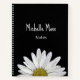 Simple and modern botanical personalised notebook, with a white daisy design on a black background, With white typography lettering, you can customise with your own information. Great for taking notes for your business!
