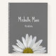 Simple botanical personalised notebook, with a white daisy design on a grey background. The back has a grey background to accent the front, With white typography lettering, you can customise with your own information. Great for taking notes for your business!