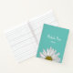 Simple botanical personalised notebook, with a white daisy design on a teal green background. The back has a teal green background to accent the front, With white typography lettering, you can customise with your own information. Great for taking notes for your business!
