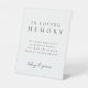 Set aside a space on the table for this "In Loving Memory" pedestal sign at your wedding. It has simple and elegant styling in white with black text. Most of the text can be personalised with your desired wording or you can order this item as shown. The script line of text at the bottom is a graphic image and cannot be edited. If you wish to remove this script text, select "edit using design template" at the bottom of the "personalise this template" and you can view all the layers of the design and delete the script layer if you desire.