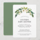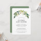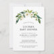 Elegant floral girl couples baby shower invitation featuring a hand painted watercolor garland with white roses and greenery at the top. The backside is a solid green and may be changed to any colour you wish. These sophisticated invitations are great for a celebration in the summer.