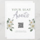 Efficiently organise your seating with our 'Simple White Floral Seating Sign featuring QR Code.' This beautifully crafted sign, with its white floral motif, offers a seamless way to guide guests to their tables, combining elegance with digital ease.