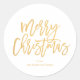 Simple White Gold Script Merry Christmas Classic Round Sticker