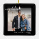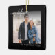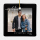 Simple White Merry Christmas Photo Black Ceramic Ornament