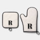 Simple White Modern Monogram Oven Mitt & Pot Holder Set