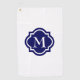 Simple and elegant white monogram on a blue quatrefoil frame. The background is white