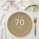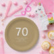 Simple White Text 70th Name Gold Birthday Party Paper Plate