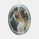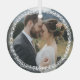 Romantic round glass Christmas ornament to celebrate your first Christmas as a married couple. Add a photo from your wedding inside a simply drawn wheat wreath in white. A pretty greenery frame for your wedding photo.