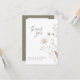A simple wildflower wedding photo thank you card. This wedding thank you features a boho floral wildflower theme with neutral brown, tan and sage green earth tones. Add a wedding photo and customise the text to create your own special thank you message for your wedding guests.