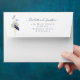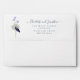 Simple wildflowers boho blue themed personalised address wedding invitation envelope perfect for a spring meadow, summer garden wedding. Beautiful artist hand painted watercolor minimalist bouquet cornflower cosmos and poppy with delicate foliage in blush blue, navy blue and cornflower blue hues. Personalised elegant modern typography script in navy blue complements this modern minimalist self addressed envelope. Original artwork by artist Catherine Sweetman