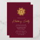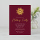 Modern foil holiday party invitations featuring a gold foil snowflake at the top of the design with a festive wine background. "Holiday Party" is displayed in a handwritten gold foil script. Personalise the foil snowflake holiday party invitations with your party details in white lettering.