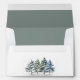 This design features an elegant Christmas envelope, with a watercolor pine trees, winter green, with the return address on the back flap, with a simple minimalist, script typography, with woodland forest, a seasonal design, a classic calligraphy style.