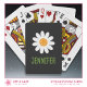 Get your game on with these fun and stylish playing cards that feature an illustration of a simple yellow and white daisy with a customisable name in green text. This modern, minimalist design will add a unique touch to card games, making them perfect for any occasion. Whether you’re gifting these playing cards to family, friends, or coworkers, they will enjoy the personal touch. Perfect for birthdays, holidays, or any special occasion.
