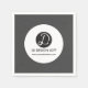 Personalise this napkin with your logo and website for your next cocktail event or corporate function. Circle in black.