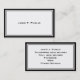 A simple business card with a Black and White graphic frame, with a white background and black print. Customised details that you'll want to include are on the reverse side, which also has the black and white frame, a white background and black print.