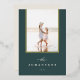 Simple and elegant holiday photo card lets your favourite family photo take centre stage. Chic design in timeless colours features a rich forest green background with your photo outlined in gold foil, and your family name and the year at the bottom Add two additional photos to the back, along with a personal holiday greeting. A beautiful minimalist choice that will make your holiday mailings stand out from the pack.