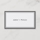 A simple business card with a Grey and White graphic frame, with a white background and black print. Customised details that you'll want to include are on the reverse side, which also has the Grey and White frame, a white background and black print.
