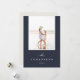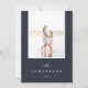 Simple and elegant holiday photo card lets your favourite family photo take centre stage. Chic design in timeless colours features a rich navy blue background with your photo outlined in white, and your family name and the year at the bottom in crisp white. Add three additional photos to the back, along with a personal holiday greeting. A beautiful minimalist choice that will make your holiday mailings stand out from the pack.