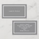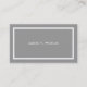 A simple business card with a white band framing a grey background and white print. Customised details that you'll want to include are on the reverse. This business card also looks great with other type colours; try red, if you want a bold look! =========