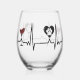 Simplistic Black Paws and Red Wine Heartbeat Stemless Wine Glass