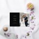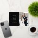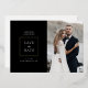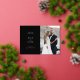 This double-sided simplistic black-and-white photo save-the-date announcement captures the essence of simplicity and sophistication. Featuring your photo with black blocking, a real gold foil square frame, and serif font on the front and another photo with your optional message on a white background on the reverse side.
