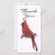Modern funeral thank you card featuring a striking red watercolor cardinal sittng on a tree branch with the text 'thankyou', and on the back is a personalised sympathy appreciation template with a photo.
