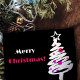 A simplistic silver christmas tree with colourful ornaments on a black background to wish a modern merry Christmas!