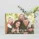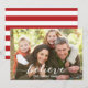 Send out your Christmas greetings to your friends and family using this beautifully hand-lettered, simple holiday photo card with the word "Believe" written in a white script font overlay. Design by ELKE CLARKE© FOR MONOGRAM GALLERY. Replace sample photo with your own. Red and white striped background on back of card. Other colours available in store at www.zazzle.com/monogramgallery