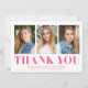 Simply Bold Hot Pink 3 Photo Graduation Thank You Card