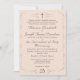 Design features a silver-coloured text against a champagne-pink background. A silver cross is displayed at top centre, while couples' monogram is featured at bottom. Text is written in traditional Catholic format. A delicate border surrounds design. Back features a silver-coloured background. An elegant flourish is pictured in centre of back design. Monogram of couples' last name is displayed above, while the bible verse of choice is featured just below. Also available in white.
