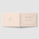 Front design features a champagne pink background to your text displayed in an elegant silver font. Sample text reads (Heading) "The wedding of" followed by the names of bride and groom on next line. Text and images are displayed within a lovely, delicate silver border.