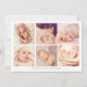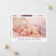 Simply stylish photo birth announcement card to introduce your sweet baby features a large landscape newborn photo with classic style mauve pink / purple text (colour can be customised) that can be personalised with a name and birth stats. The back of the card includes a collage of six (6) additional square-shaped photos. Photo tip: crop your front photo to a 4 x 6.5" size and your back photos to a square size before uploading to the site.