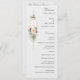 This lovely winter botanical program features bouquets of ivory roses and flowers, red holly berries, fir and golden snowflakes surrounding an elegant gold label for your monogram on a pale pearl grey background. Includes editable text fields for your ceremony and wedding party participants.