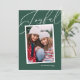This modern yet elegant holiday photo card features a beautiful dark green background with "Joyful" in white calligraphy script and one photo. This design accommodates a single vertical photo on the front of the card. On the reverse side is the same green background, to which you can add another photo and/or additional text by selecting the "edit using design tool" option.