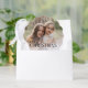 Send unique holiday greetings with these stylish photo Christmas cards that double as ornaments or large gift tags! The front contains a full bleed photo template and stylish typography reading, "Merry Christmas" in black. A white overlay towards the bottom allows the text to stand out against your photo. Text templates are included on both the front and back for simple personalisation...and a little heart on the back adds a sweet touch.