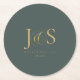 Simply Elegant Wedding Initials Green ID1022 Round Paper Coaster